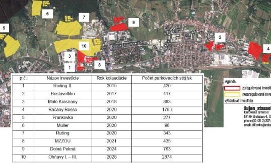Obrázok 5 - Neúplný zoznam zaregulovaných a nezaregulovaných investícií v okolí.